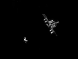 Slika je napravljana sa Zemlje, tačnije iz Engleske. Fotograf Rob Cullen nije mogao da veruje u kakvom je idealnom trenutku uperio svoj opremu u nebo. Kako sam kaže ovakav trenutak se uhvati jednom ili nikad u životu. Uhvatio je trenutak kada se šatl Discovery spajao sa ISS-om.