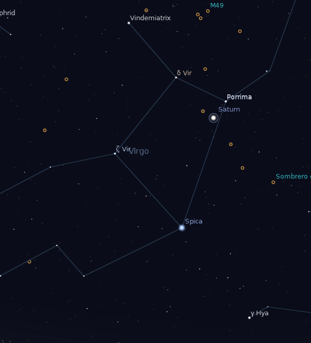 U sazvežđu Devica se trenutno nalazi planeta Saturn, koja je prava poslastica kada je u pitanju posmatranje planeta, pored Jupitera naravno. Tu je i galaksija M49 i jedna od najpopularnijih Sombrero galaksija.