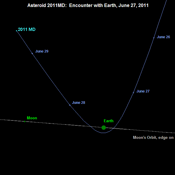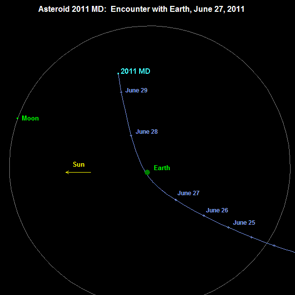 Mali asteroid 2011 MD prečnika oko 20 metara 27. juna će prići Zemlji na 12 000 km.