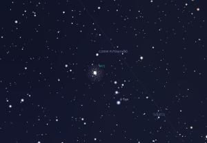 Polažaj komete Gerrard i M71 kakav smo mi videli. Naravno, kometa nije izgledala kao obična zvezda u našem okularu, kakva je prikazana u programu. Slika je iz programa Stellarium: