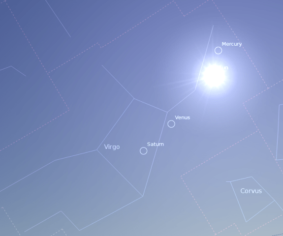 Sunce će se u trenutku početka jeseni nalaziti u sazvežđu Devica (Virgo), zajedno sa Merkurom, Venerom i Saturnom.