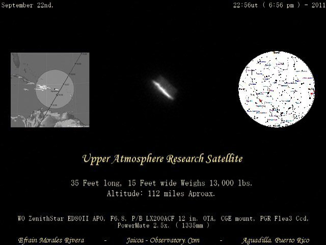 NASA je potvrdila da je satelit UARS ušao u atmosferu i sagoreo, kao i da su njegovi delovi pali na Zemlju. Još uvek se utvrđuje gde su delovi tačno završili. Ulazak u atmosferu Zemlje se desio iznad severnog Tihog okeana na zapadnoj obali Sjedinjenih Američkih Država.