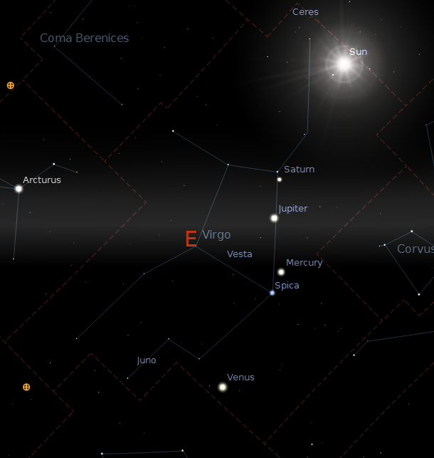 U trenutku mog rođenja, pored Sunca, u sazvežđu Devica je boravilo 4 planeta, 2 asteroida i 1 planetoid. Merkur, VeneraJupiter, Saturn, asteroidi Juno i Vesta i planetoid Ceres.