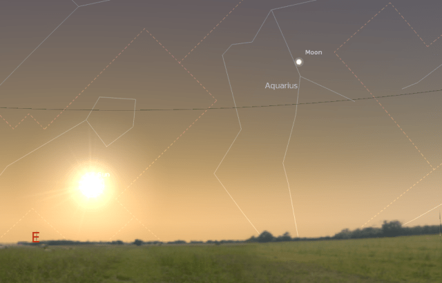 U trenutku početka proleća Sunce će boraviti u sazvežđu Ribe, dok će Mesec biti u sazvežđu Vodolija. Oba sazvežđa će tada biti iznad horizonta: