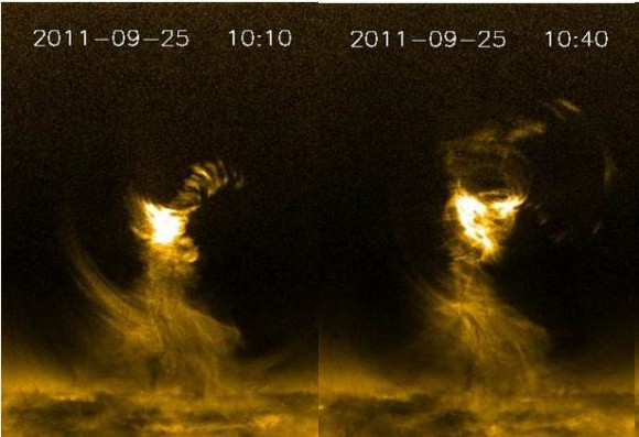 Tornado je snimljen 25. septembra 2011. godine. Za razliku od tornada na Zemlji koji dostižu brzinu od 150 km/h, tornado na Suncu dostiže brzinu od 300 000 km/h.
