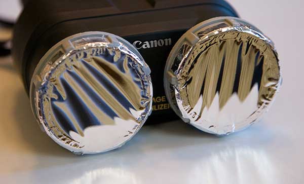 Imaš one male sličice na dnu teksta gde postavljaju foliju i na teleskop i na dvogled. Najbitnije je da je folija ispred optike.