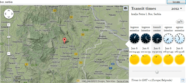 Na zvaničnom sajtu ovog događaja možete pogledati podatke koji vam mogu koristiti za posmatranje iz vašeg mesta. Sve što treba je ukucati grad u polje locate i dobićete podatke o tranzitu Venere koji važe za vas. U suštini svi podaci su slični, a razlika se meri u sekundama kada su u pitanju gradovi u, recimo, Srbiji.