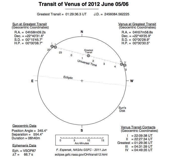 Tranzit Venere će se ove godine desiti 6. juna i počeće nešto pre ponoći i trajati do 7h ujutru. U to vreme Sunce će se na istočnom horizontu pojaviti oko 5h i odmah možemo početi sa praćenjem tranzita. Naravno, ko bude imao volju da zbog toga ustane rano ujutru. 😉