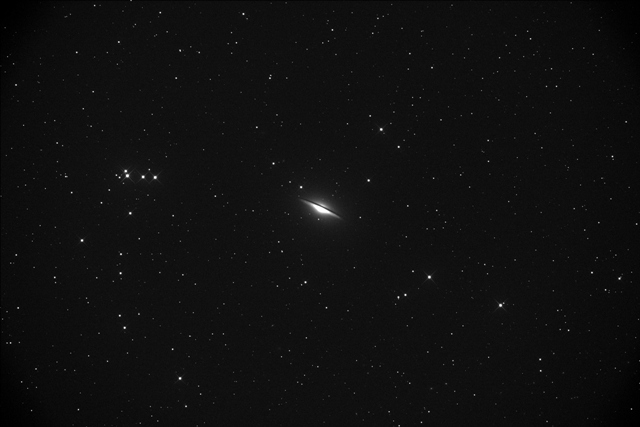 Sombrero ili M104, galaksija koja je jedna od najpopularnijih među amaterskim astrofotografima se vidi fenomenalno u okularu od 10 mm (baš kao na slici, ali sa malo manje oštrine). Sjajno jezgro oko koga se jasno vidi disk galaksije za koji znamo da je bogat prašinom. Malo iznad je bio Saturn, ali smo ostavili za četvrtak.