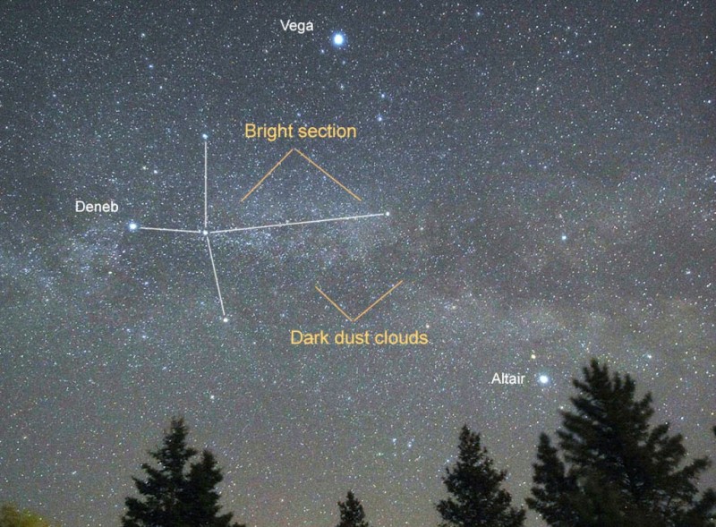 Kada ste pronašli sve elemente ovog trougla, pronašli ste i mesto gde se na nebu pruža naš Mlečni put, odnosno vidimo deo mlečnog puta koji nam naša lokacija u njemu dozvoljava. Vidimo ga sa boka i pruža se između Vege i Altaira i baš u pravcu krsta u Labudu, dok se Deneb se nalazi u sred Mlečnog puta.