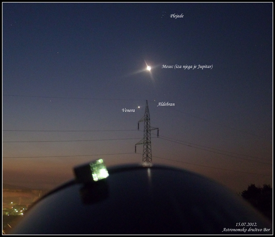 Fenomenalno iskustvo i još fenomenalniji izgled istočnog neba prepun poznatih nebeskih objekata. Pored Jupitera i Meseca tu je bila i Venera, narandžasto-crvena zvezda Aldebaran, kao i nezaobilazne Plejade. Svi ovi objekti su se jutros nalazili u sazvežđu Bik.