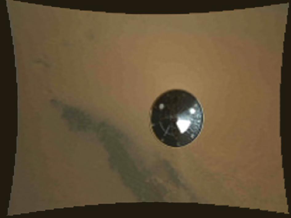 Na sledećoj slici je prikazan trenutak odvajanja toplotnog štita od MSL-a (Mars Science Laboratory) , a snimljeno je pomoću instumenta MARDI (Mars Descent Imager). Ovo je trenutak 2,5 minuta pre sletanja na površinu Marsa i 3 sekunde nakon odvajanja toplotnog štita: