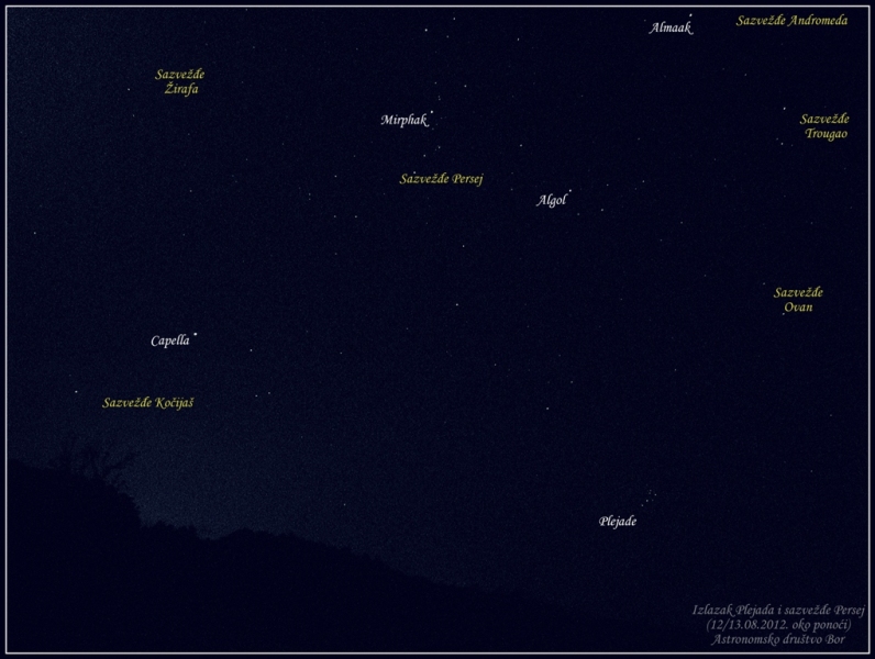 Posmatranje je održano nekih 5-6 km od grada, a sa sobom nismo poneli ništa od astronomske opreme jer je cilj bio posmatranje Perseida.