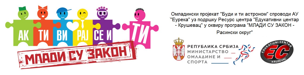 Budi i ti astronom je omladinski projekat koji sprovodi AU “Eureka” uz podršku Resurs centra “Edukativni centar – Kruševac” u okviru porograma “MLADI SU ZAKON – Rasinski okrug”, koga finansira Ministarstvo omladinje i sporta.