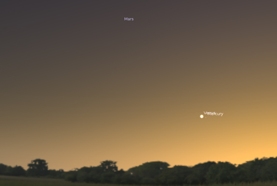 Takođe, na istom delu neba se već nalazi i Mars koji će tu boraviti duže. Nekoliko dana ćemo ove tri planete moći da posmatramo na istom delu neba golim okom.