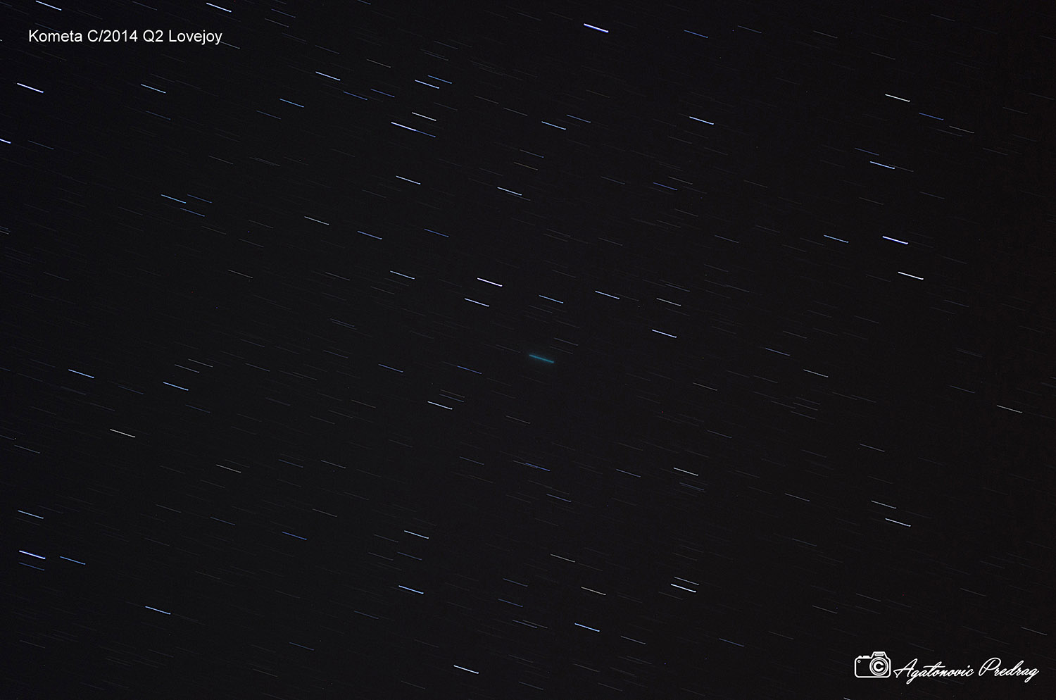 Na slici ispod su prikazani zvezdani tragovi u zelenkasta kometa C/2014 Q2 Lovejoy: