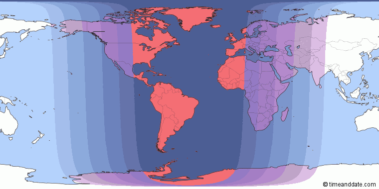 Ukupno pomračenje će trajati 5 sati i 11 minuta, dok će potpuno trajati 1 sat i 12 minuta.