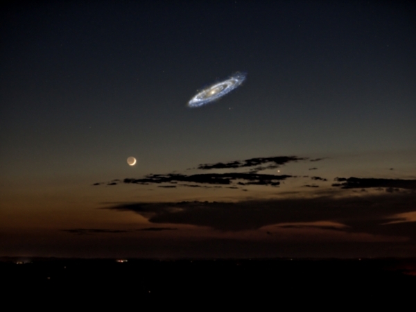 Jednostavno, da je sjajnija galaksija Andromeda bi bila skoro 6 puta veća od Meseca. Poređenja radi Mesec je udaljen u proseku 384 000 km i ima prečnik oko 3450 km, dok je Andromeda udaljena oko 2,2 miliona svetlosnih godina i ima prečnik oko 110 000 svetlosnih godina. Teško je zamisliti te razmere, ali vredi pokušati.