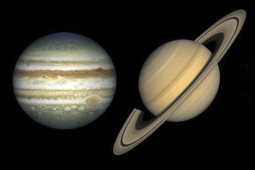 Nakon zalaska Sunca dve najveće planete u Sunčevom sistemu nalaze se na južnom nebu u sazvežđu Strelac na visini od oko 25 stepeni. Jupiter prvi zalazi i sada prestaju da budu vidljive između 20:30h i 21h, dok će na kraju meseca biti znatno bliže jedna drugoj i neće biti vidljive nakon 19h.