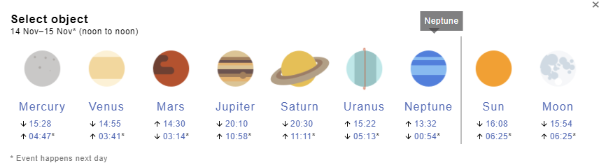 Vreme izlaska i zalaska nebeskih tela se može sasvim malo razlikovati u zavisnosti od mesta posmatranja, odnosno vaše lokacije za isti dan u godini.