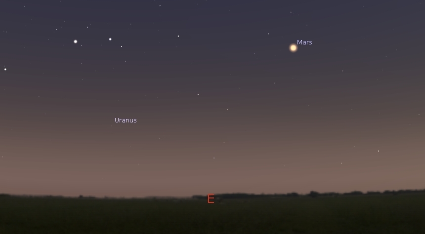 Na početku pomenuti Uran sada ima magnitudu od 5,66 i nalazi se u sazvežđu Ovan. Pre smo 20-ak sati bio je u opoziciji, odnosno Zemlja se nalazila između Urana i Sunca. Vidljiv je golim okom ali samo iz svetlom nezagađenih područija i kada nema mesečine. Dvogledom se može videti bez problema.
