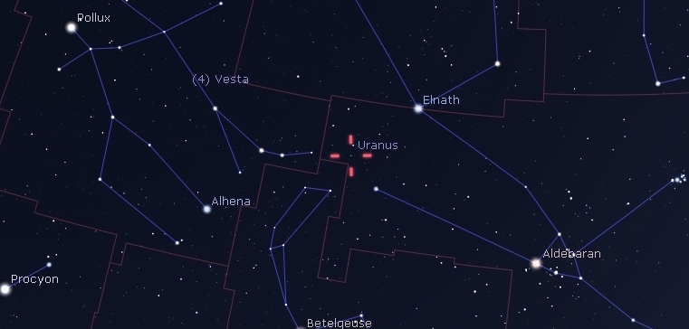 U izvorima se navodi da je Heršel tada svoj teleskop uperio prema sazvežđu Blizanci, ali sam ja da ne budem lenj progledao u Stellarium-u i primetio da je prema ovom softveru Uran tada bio u sazvežđu Bik. U tom trenutku je sjaj Urana bio veliki i to magnitude 5,59 (izvor: Stellarium) i s obzirom na vreme bez svetlosnog zagađenja gotovo sigurno je bio vidljiv golim okom. Meni zanimljiva informacija, ali danas nebitna za ovo otkriće.