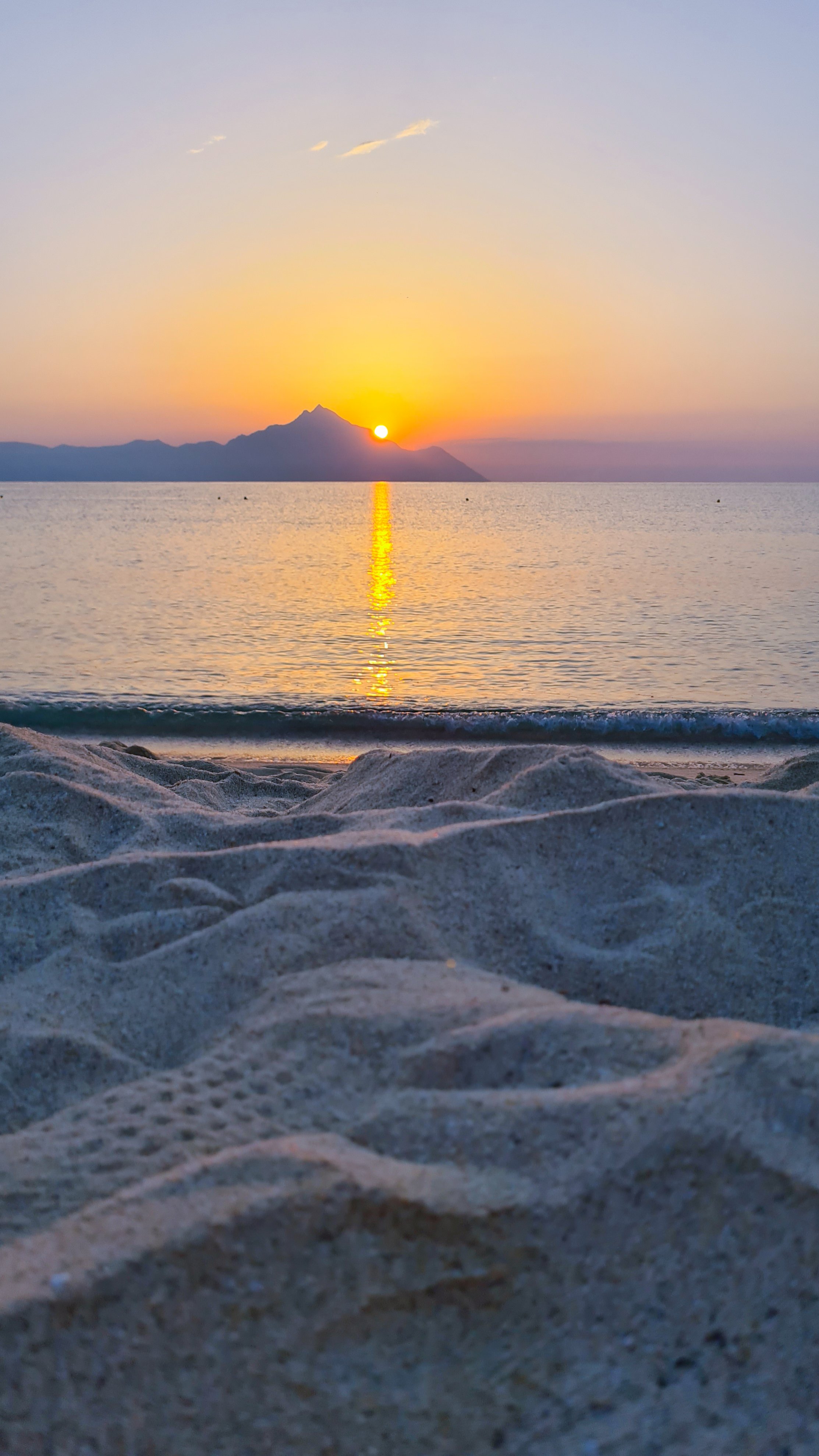Već prvog jutra boravka u Sartiju je bilo jasno da je izlazak Sunca iznad planine Atos veličanstvan. S obzirom da na letovanju redovno ustajem u 6h jasno je da sam posmatrao izlaske Sunca iznad ove planine svakog jutra, a nekoliko puta odlazio na plažu i fotografisao sa članovima porodice. Nebo je samo jednog jutra bilo prekriveno oblacima.