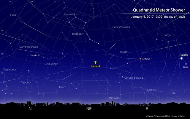 Prvi ovogodišnji meteorski roj su naravno Kvadrantidi. Matično sazvežđe ovog roja je nekada bilo sazvežđe Quadrans Muralis, koje je sada deo sazvežđa Volar, a gde je i radijant (prividno mesto gde se meteori pojavljuju na nebu) Kvadrantida.