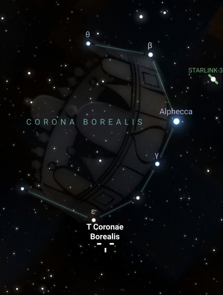 Sistem se nalazi u bledom sazvežđu Corona Borealis u blizini zvezde epsilon. Sistem je sada magnitude +10 i nije ni blizu da se vidi golim okom. Eksplozija nove bi trebalo da na nekoliko dana poveća sjaj na +2 i na slici desno se vidi tačan položaj u koji bi trebalo da uperimo svoje telefone ili fotoaparate i zabeležimo ovaj astronomski događaj.