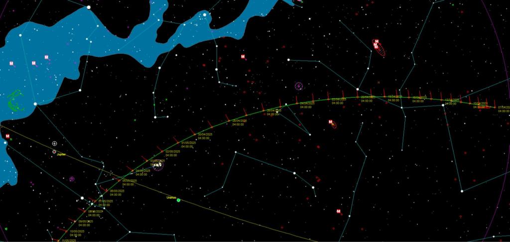 Sledi detaljnija mapa kretanja komete u narednom periodu: